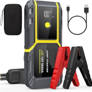 6000A Car Battery Jump Starter(for All Gas or up to 12L Diesel) Powerful Car Jump Starter with Dual USB Quick Charge and DC Output,12V Jump Pack with Built-in LED Bright Light