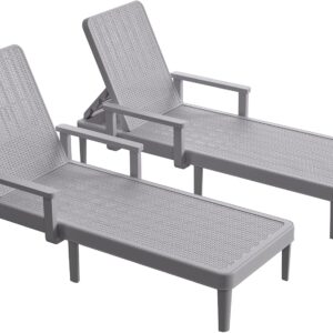 Chaise Lounge Chair Outdoor 2PCS – 5 Position Adjustable Backrest,Armrest,Waterproof,Easy Assembly,300lb Weight Capacity for Pool,Resin,Light Grey
