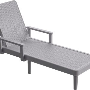 Chaise Lounge Chair Outdoor 1PCS – 5 Position Adjustable Backrest,Armrest,Waterproof,Easy Assembly,300lb Weight Capacity for Pool,Resin,Light Grey