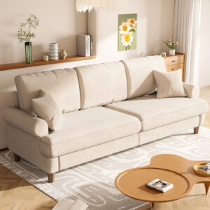 Corduroy Sofa,3 Seater Sofa with Extra Deep Seats,Comfy Upholstered Couch for Living Room,2 Pillows