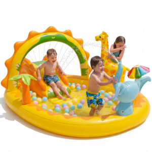 Homrelexa Inflatable Pool Giraffe Play Center with Slide & Elephant Sprinkler, Outdoor Kiddie Pool, Age 2+, 82.7” x 67” x 41.3”