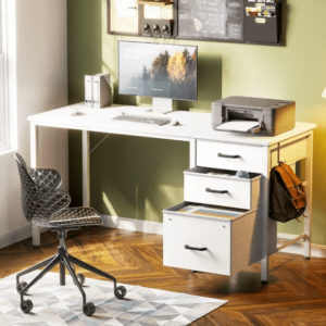 Homrelexa 55″ Computer Desk, Home Office Desk Small PC Table with Drawers and Storage Shelves, White