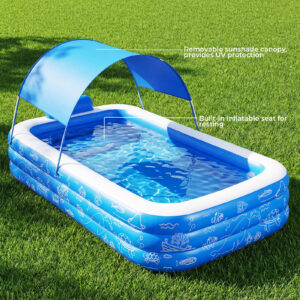 Homrelexa Inflatable Pool with Canopy, Large Size Swimming Pool, Thickened Kiddie Pool for Kids Children Family Outdoor, 120” x 68” x 57”