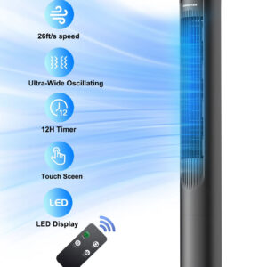 HOMSHADE 41″ Tower Fan, Wide Oscillating Fans with 3 Speeds, 3 Modes, 26 ft/s High Velocity, LED Display with Remote, 12H Timer, for Home,Living Room,Office