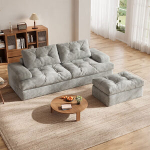 HOMSHADE 83″ Corduroy Sofa,Loveseat Sofa with Extra Deep Seat Couches ,Comfy Upholstered Couch for Living Room,Tool-Free Setup with 2 Pillows,Beige