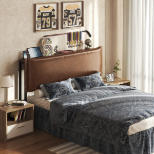 Patbrela Headboard for Twin Size Bed, Retro Oil-Waxed Leather Upholstered Head Board with LED Light and Charging Station, Adjustable Height, Brown