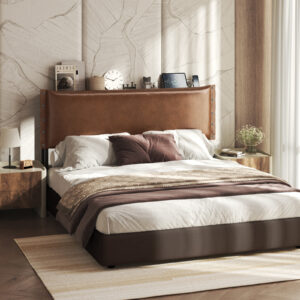 Patbrela Headboard for Queen Size Bed, Retro Oil-Waxed Leather Upholstered Head Board with LED Light and Charging Station, Adjustable Height, Brown