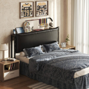 Patbrela Headboard for Twin Size Bed, Retro Oil-Waxed Leather Upholstered Head Board with LED Light and Charging Station, Adjustable Height, Black