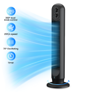 TASKBAY Tower Fan ,31″ Oscillating Standing Fan for Home,TASKBAY Floor Fan with 360°Dual Knob Control ,3 Speed ,Timer Bladeless Fan for Bedroom Office ,Black